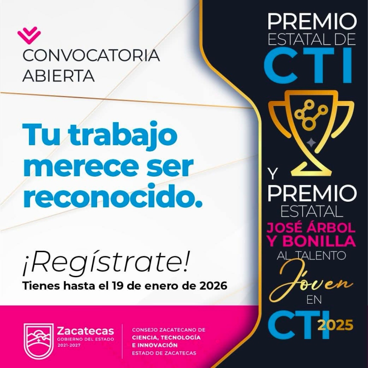 El Gobierno del Estado convoca a participar en el Premio Estatal de Ciencia, Tecnología e Innovación y Premio Estatal “José Árbol y Bonilla” al Talento Joven Científico, Tecnológico o de Innovación Bienestar 2025, cuya convocatoria sigue abierta.