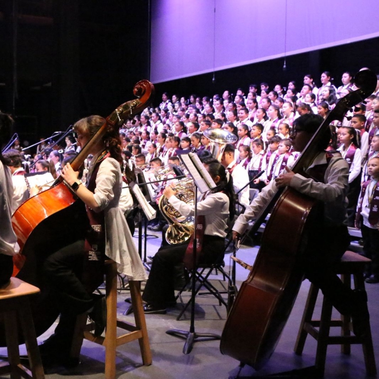 El escenario se llenó de energía y emoción con la participación de más de 300 niñas, niños y jóvenes, provenientes de los municipios de Zacatecas, Guadalupe, Morelos, Fresnillo y Jerez, 100 pertenecientes a la Orquesta Sinfónica y 201 al Coro, conformando un ensamble que evidencia el poder transformador de la música en la vida de la juventud zacatecana.