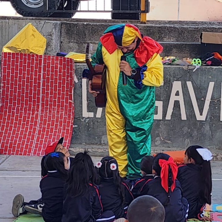Fue en la cancha de la localidad donde el cuentacuentos Simitrio Quezada personificó tanto a juglares como diversos animales, en una dinámica de interacción que combinó canciones y juegos.