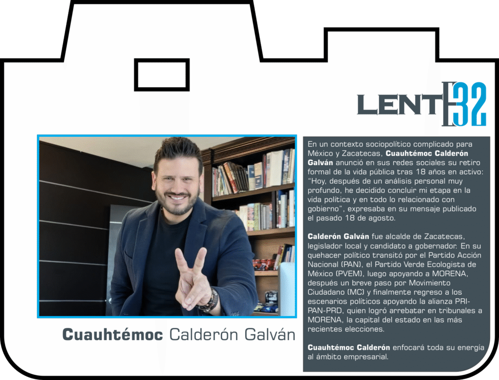En un contexto sociopolítico complicado para México y Zacatecas, Cuauhtémoc Calderón Galván anunció en sus redes sociales su retiro formal de la vida pública tras 18 años en activo: “Hoy, después de un análisis personal muy profundo, he decidido concluir mi etapa en la vida política y en todo lo relacionado con gobierno”, expresaba en su mensaje publicado el pasado 18 de agosto.
