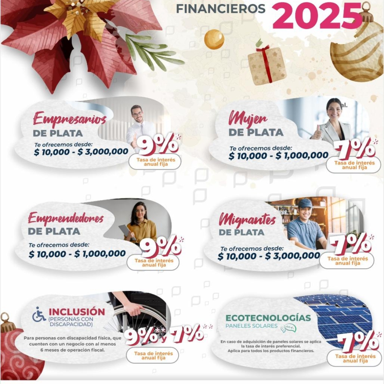 Por su parte, Empresarios de Plata está orientado a empresas que desean crecer, modernizarse o realizar inversiones estratégicas. Los créditos van desde 10 mil hasta 3 millones de pesos y mantienen una tasa del 9 por ciento anual por pago puntual, lo que coloca este financiamiento como una opción competitiva y atractiva para quienes buscan expandirse con estabilidad financiera.