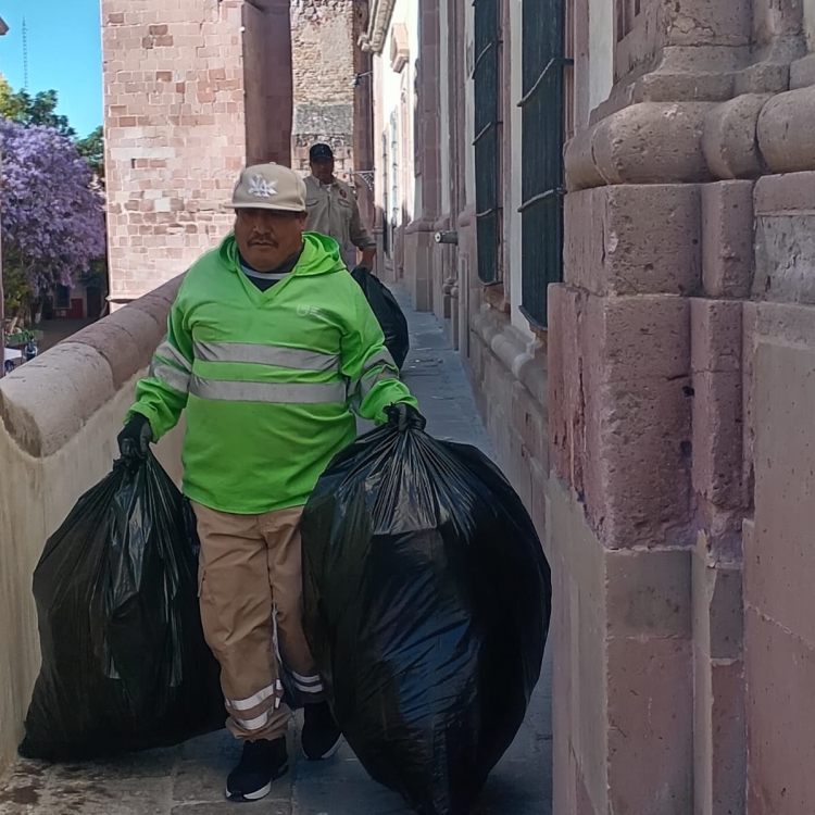 En cumplimiento a las indicaciones del Gobernador David Monreal Ávila, las brigadas realizan labores de recolección de basura, barrido y mantenimiento en cada rincón de la ciudad, con lo que logran que Zacatecas brille y se consolide como un referente cultural y turístico.